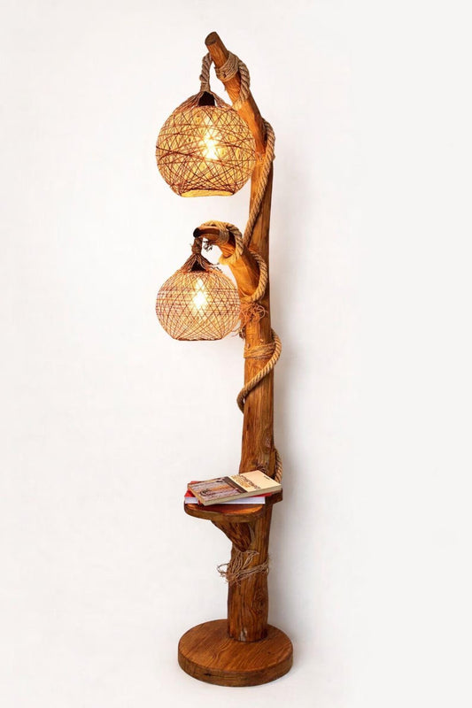 55 Inch Handmade Rustic Wooden Floor Lamp with Rope